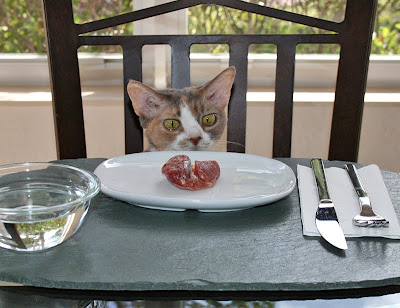 Miss Manners would be proud. You are exhibiting perfect table manners, Daisy. ...or at least you did for the photo. What came after this photo is anyone's guess!