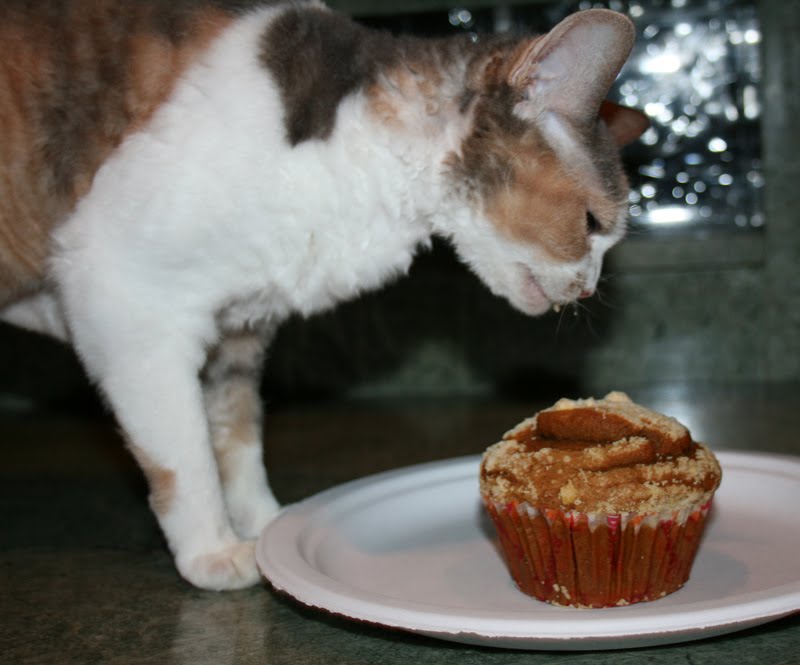 Pumpkin muffin? That wouldn't last long enough for a photo, if our mom was there. Heh heh. Pumpkin's her favourite!